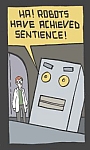 The singularity is often equated with a Terminator or Matrix type of a TechnoCalyps based on the presumption that once artificial intelligence becomes sentient then supposedly the most likely action they will undertake is to exterminate us. The following cartoon has been circulating for a while around the general singularity and transhumanist community, but because it is so funny, I thought I’d post it anyway. Even if you may have seen it before you may still find it funny again… I know I laugh every time I read it, and I’ve read it a dozen times by now Hat tip to Singularity 2045 for finding the cartoon first. Related articles Singularities Happen: Alan Watts explains the Singularity… (singularityblog.singularitysymposium.com) The Best of Singularity Weblog 2010 (singularityblog.singularitysymposium.com) Why I Am an Optimist (singularityblog.singularitysymposium.com) A Transhumanist Manifesto (singularityblog.singularitysymposium.com)